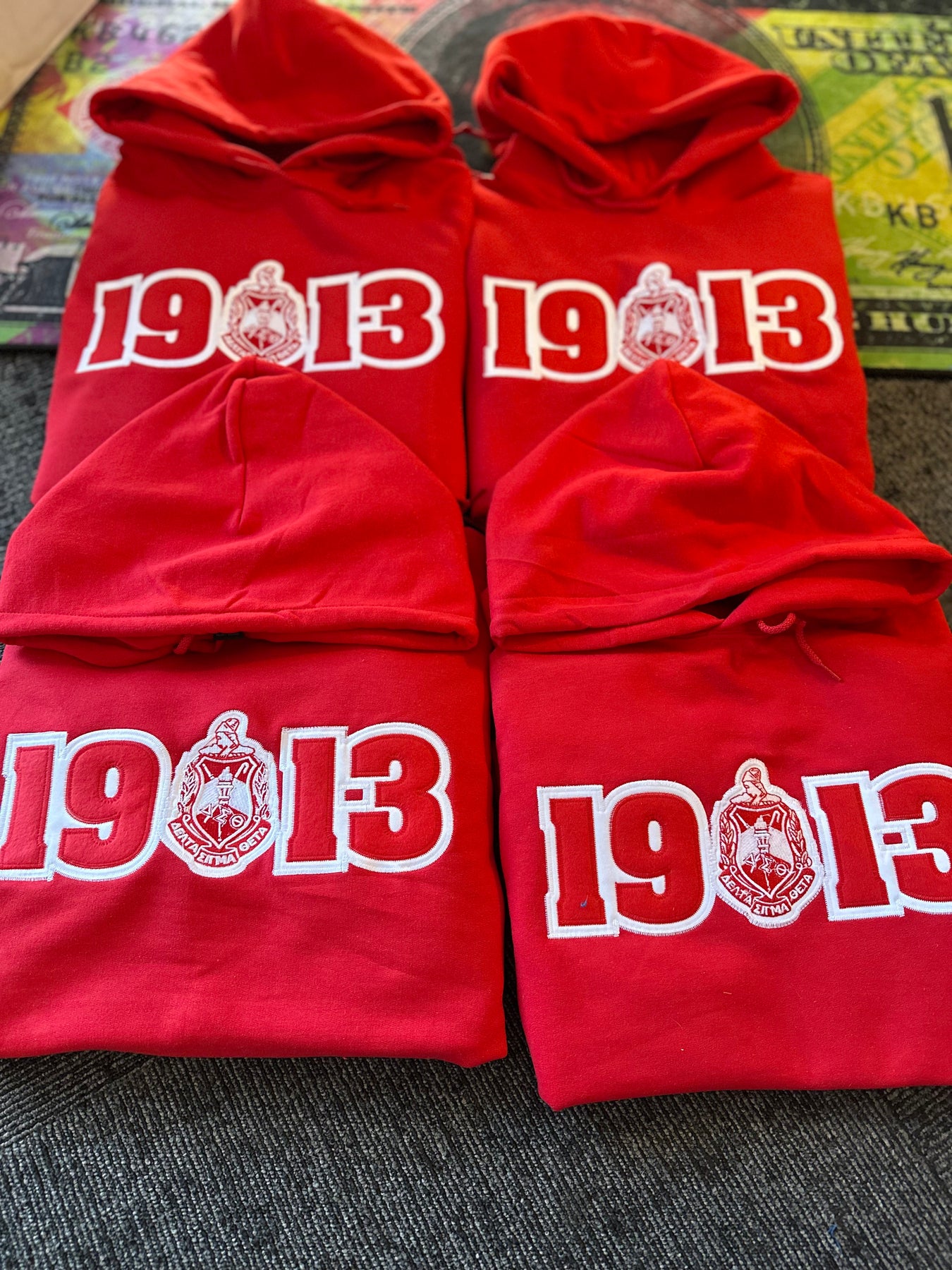 Classic unisex goose with 1913 and crest in the middle. Fully embroidered