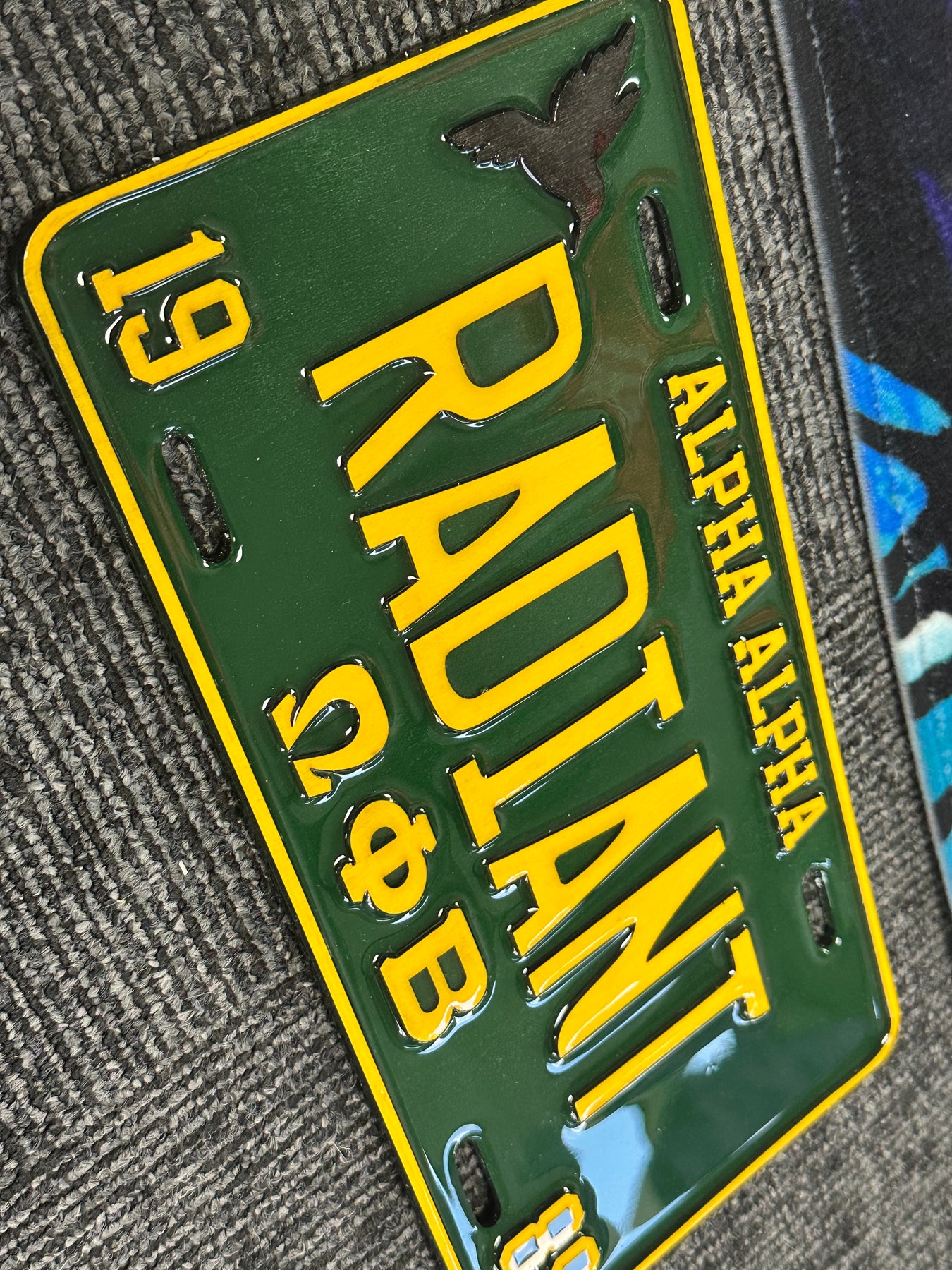 Plate comes with RADIANT on the front and you can dd your chapter as well for a more customized look